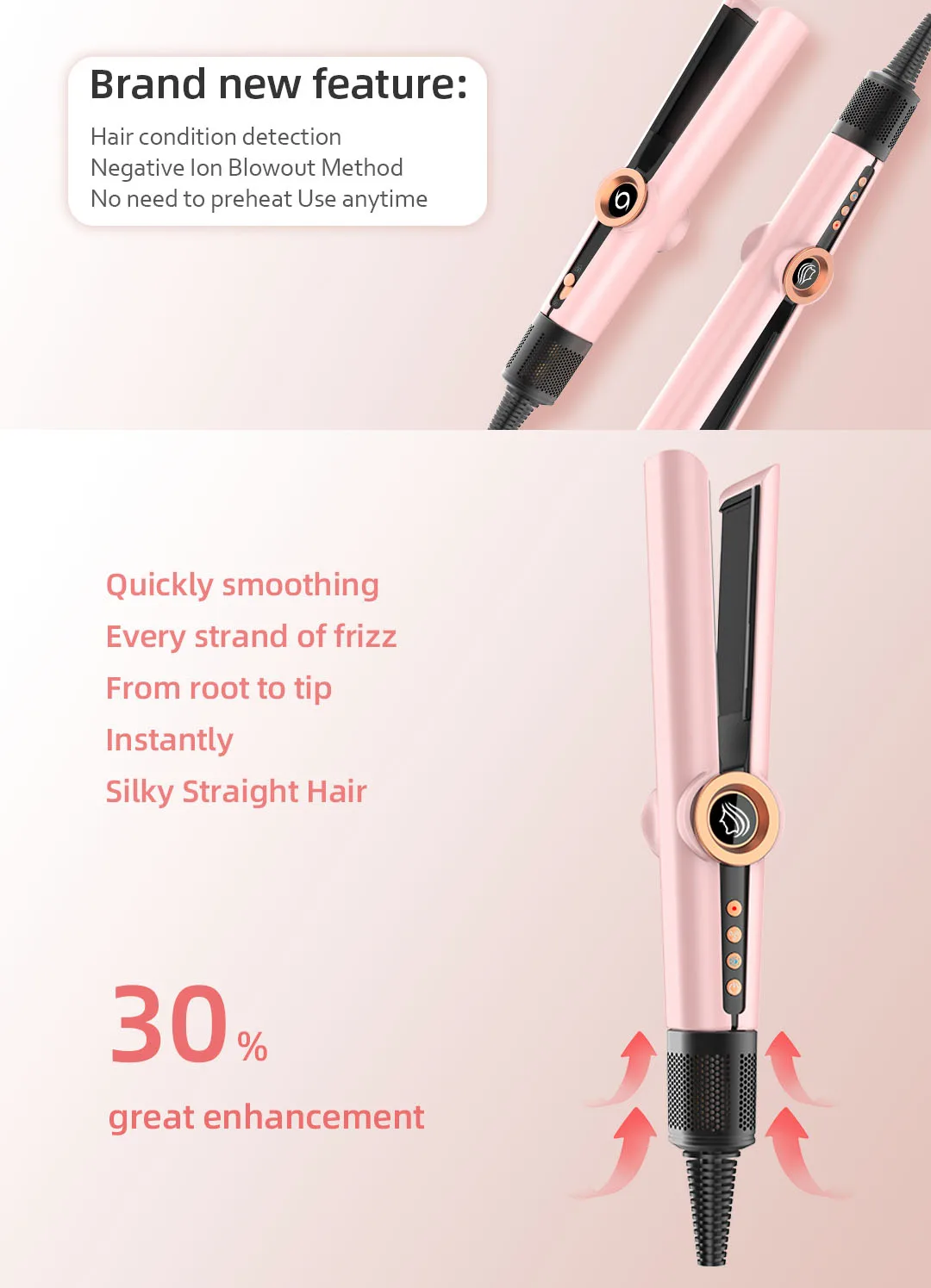 Appareil révolutionnaire 2 en 1 qui combine sèche-cheveux et lisseur en un seul outil. Passez de cheveux mouillés à une chevelure lisse et soyeuse sans étapes supplémentaires. Technologie de séchage haute vitesse avec contrôle thermique précis pour protéger vos cheveux. Design compact et portable, parfait pour les déplacements. Chauffage instantané et performance professionnelle adaptée à tous les types de cheveux. Gagnez du temps chaque matin avec cet allié incontournable de votre routine beauté.